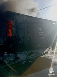 На улице Советской около полудня загорелся гараж и два находящихся в нем автомобиля: "Нива" и Hyundai Grand.